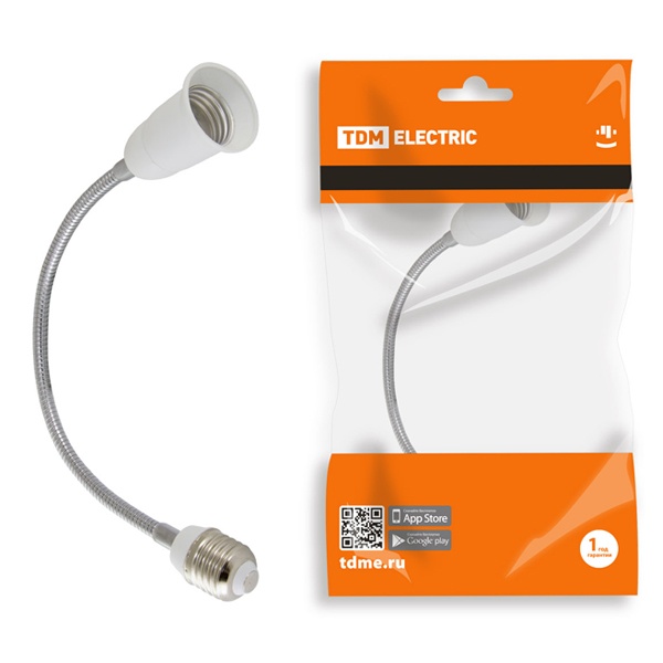 Переходник Е27-Е27 гибкий 300мм, белый, TDM Electric