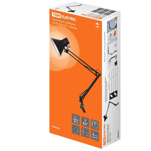 Светильник струбцина 220В, 40Вт, E27 черный TDM Electric