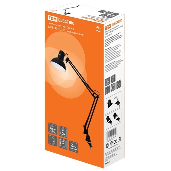 • Светильник струбцина TDM 220В, 40Вт, E27 черный глянец