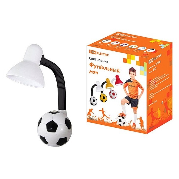 Настольная лампа детская Футбольный мяч ТДМ, максимальной мощностью 40 Ватт, с цоколем E27, цвет бело-черный SQ0337-0048