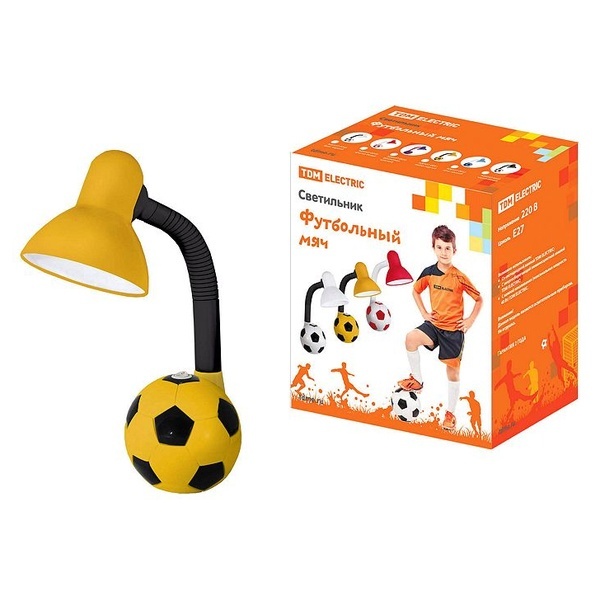 Настольная лампа детская Футбольный мяч ТДМ, максимальной мощностью 40 Ватт, с цоколем E27, цвет желто-черный SQ0337-0051