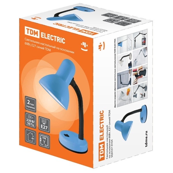 Настольная лампа ТДМ с цоколем E27, максимальной мощностью 60 Ватт, с выключателем, синего цвета SQ0337-0104