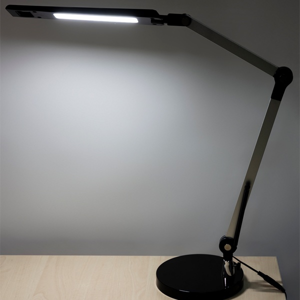 Светодиодный настольный светильник ТДМ с 2-коленным кронтштейном, мощностью 9 Ватт, дневной свет, с регулировкой яркости, черно-серебрянного цвета SQ0337-0162