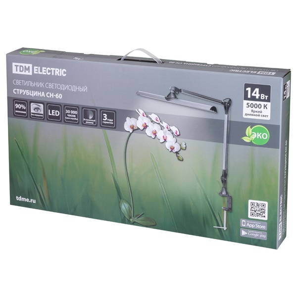 • Светильник светодиодный настольный TDM СН-60 струбцина сенсор-диммер 14W 5000K 220V серебро/черный 2