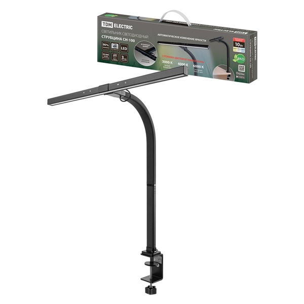 Светильник ТДМ CH-100 настольный, светодиодный на струбцине, мощностью 10 Ватт, с регулировкой цветовой температуры, цвет черный SQ0337-0166