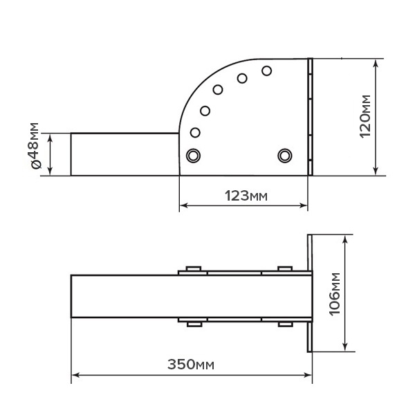 Диаметр трубы кронштейна - 48 мм.