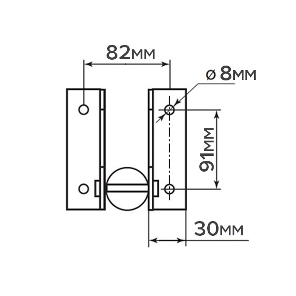 Диаметр отверстий - 8 мм. Расстояние между отверстиями - 82 мм.