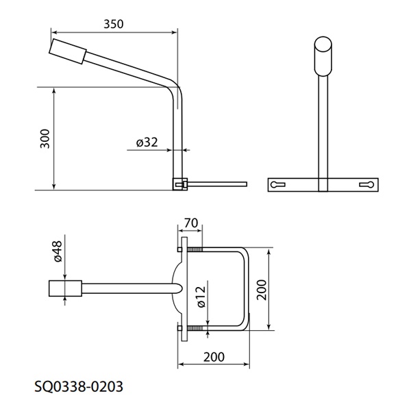 Размер скобы: 200х200мм.Резьба: диаметр 12мм, длина70мм.