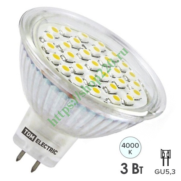 Лампа светодиодная MR16-3 Вт-220 В -4000 К–GU 5,3 SMD TDM