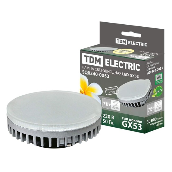 Лампа светодиодная GX53 - это источник света на основе технологии светодиодов (LED). Она представляет собой плоский круглую лампу с цоколем GX53, который обеспечивает высокую яркость и эффективность, используя значительно меньше энергии, чем обычные лампы накаливания.