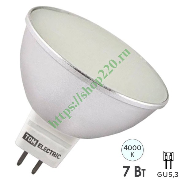 Лампа светодиодная MR16-7 Вт-220 В -4000 К–GU 5,3 SMD (с матовым стеклом) TDM