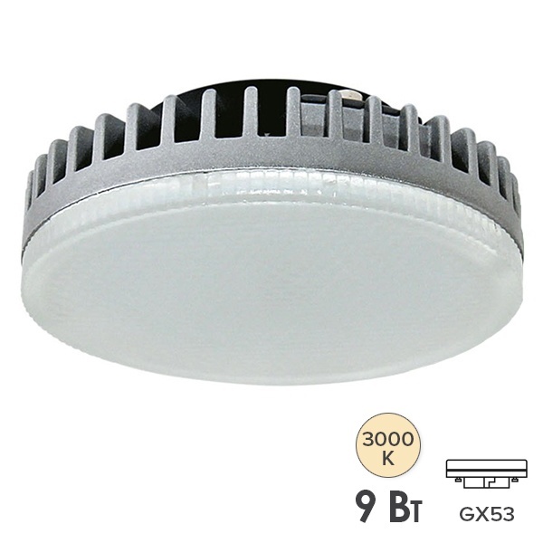 LED лампочка таблетка мощностью 9 Вт с цоколем GX53 теплый белый свет для натяжных потолков SQ0340-0074