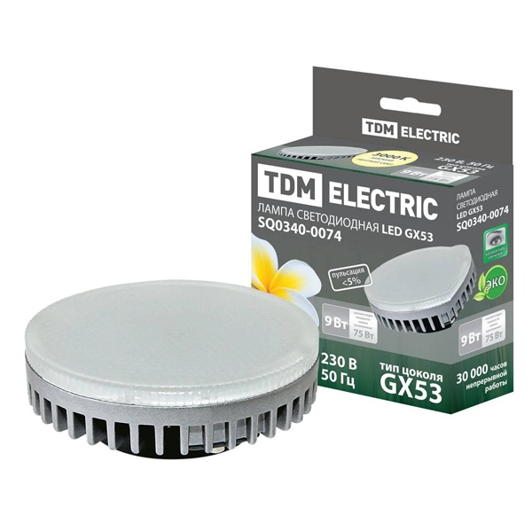 SQ0340-0074 Лампа светодиодная таблетка 9Вт 3000К 220В GX53 тепло-белый свет TDM фото 2
