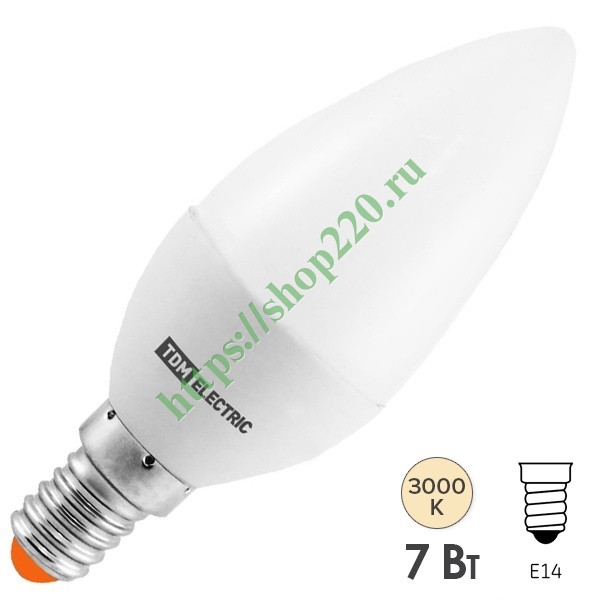 Энергосберегающая LED лампочка свеча, мощностью 7 Вт, с цоколем E14, теплый белый свет SQ0340-0172