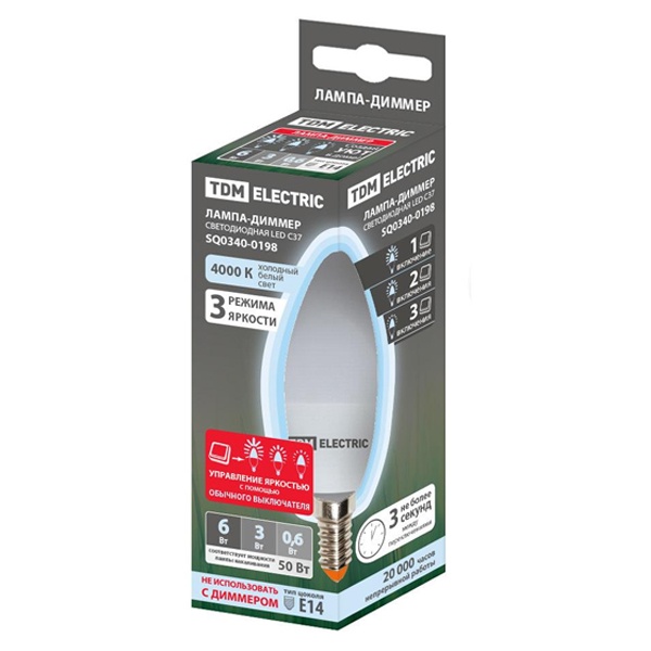 Лампа светодиодная С37-6 Вт-230 В-4000 К–E14 "Лампа-ДИММЕР" TDM Electric