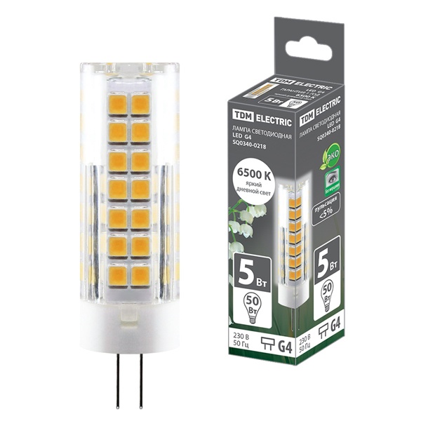 SQ0340-0218 Лампа светодиодная TDM 5W 220V 6500K G4 SMD 16x55mm дневной свет фото 1