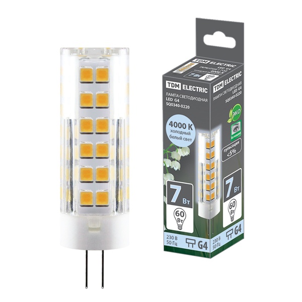 SQ0340-0220 Лампа светодиодная TDM 7W 220V 4000K G4 SMD 18,5x57mm холодный свет