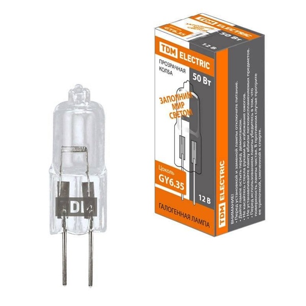 Устанавливая галогенную лампу в электропатрон, необходимо полностью исключить контакт пальцев с колбой лампы. В противном случае возможен мгновенный выход из строя. Рекомендуется использовать с блоком защиты для галогенных ламп TM TDM ELECTRIC.