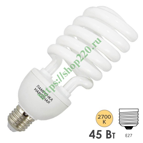 • Мощность: 45 Вт (Эквивалент лампы накаливания 225 Вт)