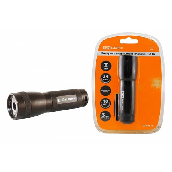 Светодиодный металлический фонарик ТДМ, источник питания 3 батарейки типа ААA SQ0350-0010