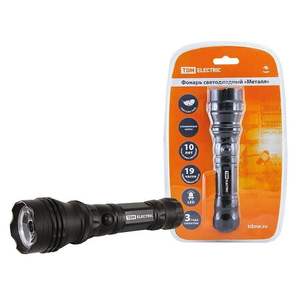 Фонарь светодиодный "Металл", 3 Вт светодиод 120 лм/Вт, батареи типа 3*AAA (в комплект не входят) TDM Electric