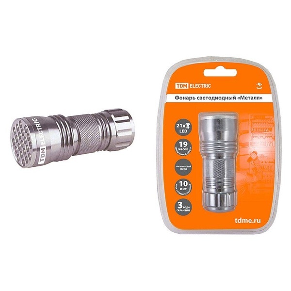 Фонарь светодиодный "Металл", 21 светодиод 63 лм/Вт, бататреи типа 3*AAA ( в комплект не входят ) TDM Electric