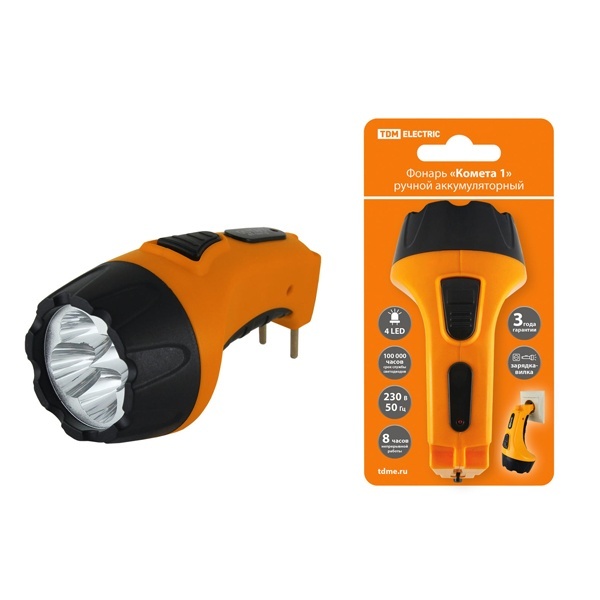 Фонарь «Комета 1» ручной аккумуляторный, 4 светодиода, 0,5Ач 230В вилка, TDM Electric