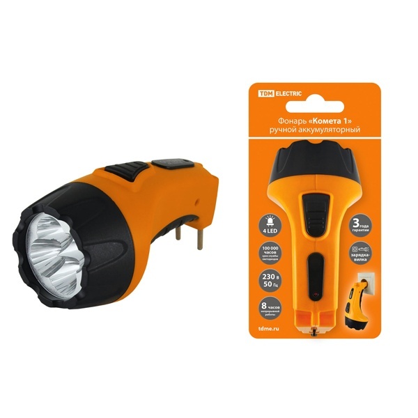 Фонарь «Комета 3» ручной аккумуляторный, 15 светодиодов, 1,1Ач 230В вилка, TDM Electric