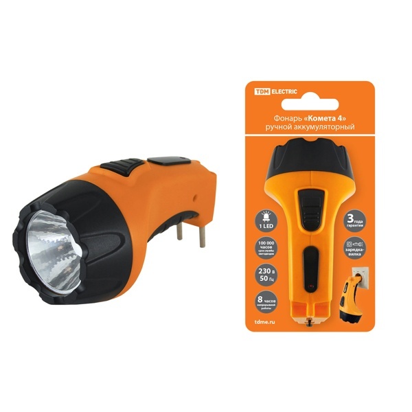 • Фонарь TDM Комета 4 ручной аккумуляторный 1W 1LED 0,5Ah 230V встроенная вилка