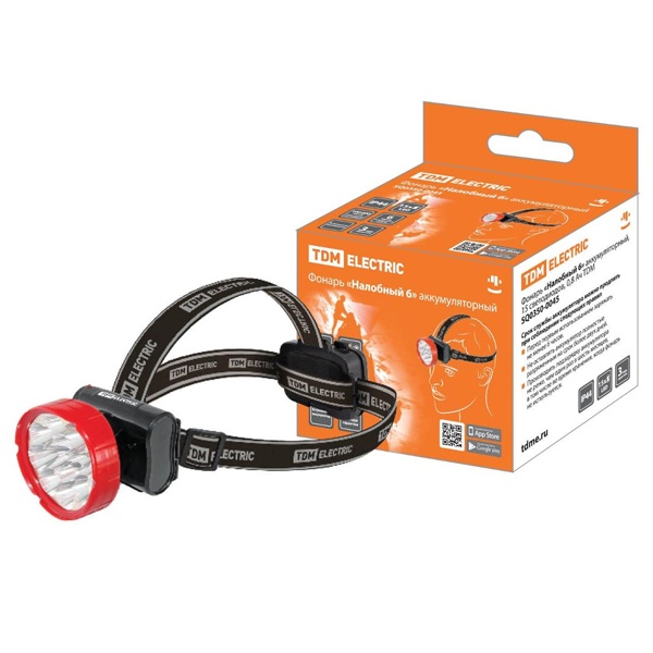 Головной влагостойкий фонарь ТДМ Налобный 6 с 15 светодиодами, питанием от аккумулятора емкостью 0,8Ач SQ0350-0045