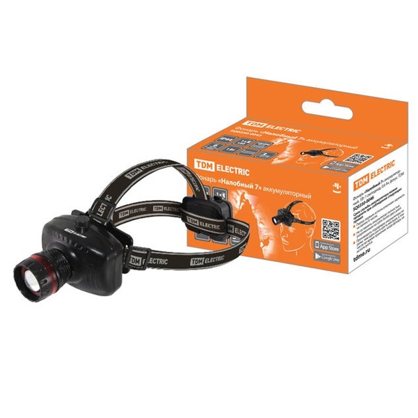 • Фонарь налобный аккумуляторный TDM 1W 1LED 0,6Ah фокусировка луча