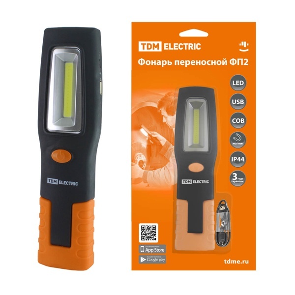 Фонарь переносной светодиодный ФП2, 5 Вт, 240 лм, Li-Ion 3,7 В 1,3 A*ч, USB, магн, TDM Electric
