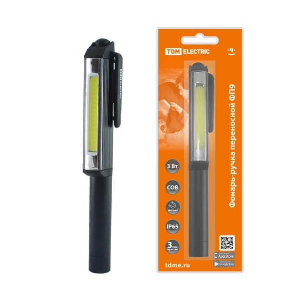 Фонарь-ручка переносной светодиодный ФП9, 3 Вт COB, 200 лм, 3хААА, магн., TDM Electric