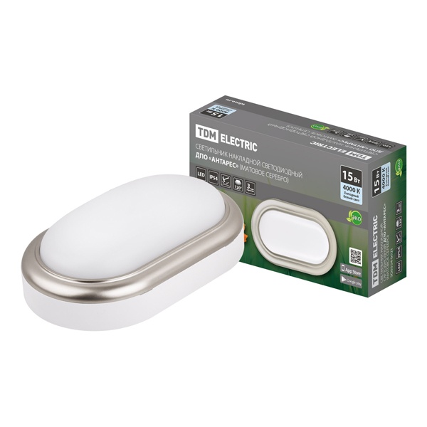 Светильник накладной LED ДПО "Антарес" 15Вт 4000К овал 221*131*68 мм мат.серебро IP54 TDM Electric