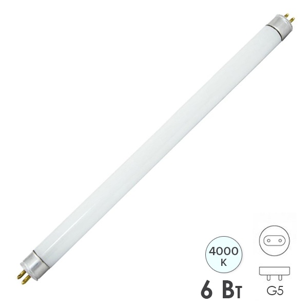 Двухцокольная лампа-трубка люминесцентная ЛЛ Т4 мощностью 6 Вт с цоколем G5 белого (дневного) света для ЭПРА SQ0355-0001