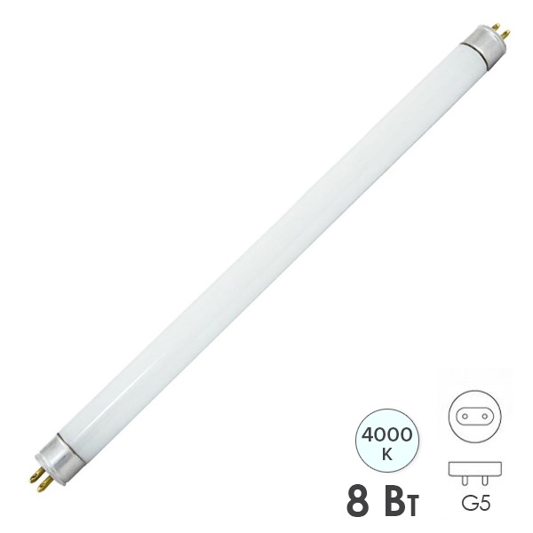 Двухцокольная лампа-трубка люминесцентная ЛЛ Т4 мощностью 8 Вт с цоколем G5 белого (дневного) света для ЭПРА SQ0355-0003