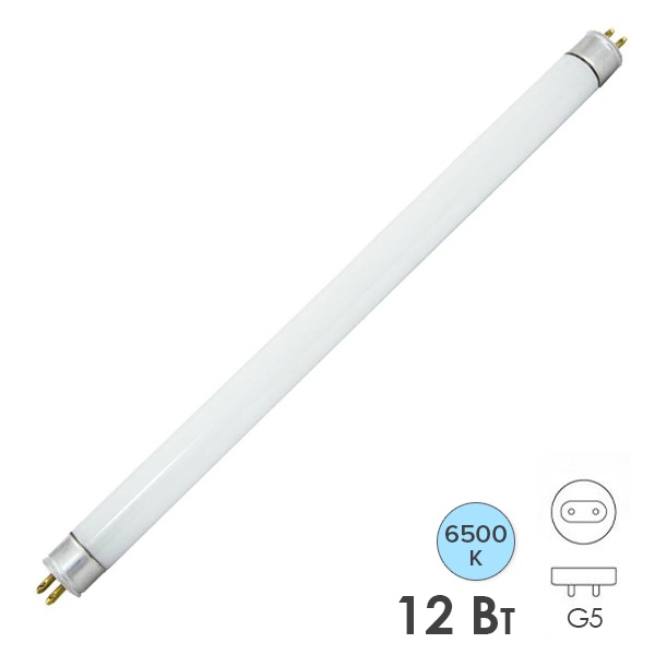 Лампа люминесцентная линейная двухцокольная ЛЛ-12/12Вт, T4/G5, 6500 К, длина 368,2мм TDM Electric