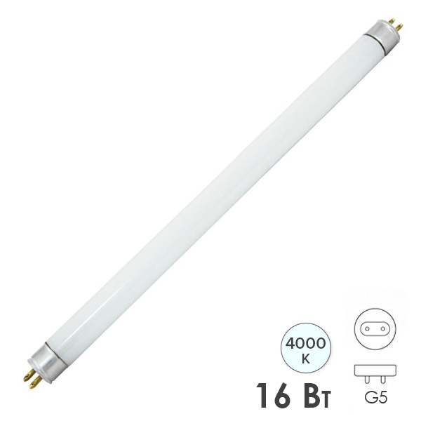 Двухцокольная лампа-трубка люминесцентная ЛЛ Т4 мощностью 16 Вт с цоколем G5 белого (дневного) света для ЭПРА SQ0355-0007