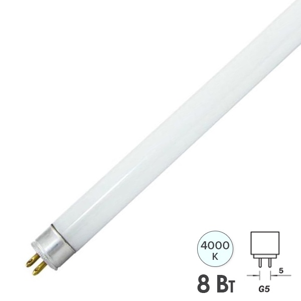 Двухцокольная лампа-трубка люминесцентная ЛЛ Т5 мощностью 8 Вт с цоколем G5 белого (дневного) света для ЭПРА SQ0355-0017