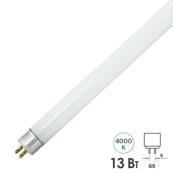 Двухцокольная лампа-трубка люминесцентная ЛЛ Т5 мощностью 13 Вт с цоколем G5 белого (дневного) света для ЭПРА SQ0355-0019