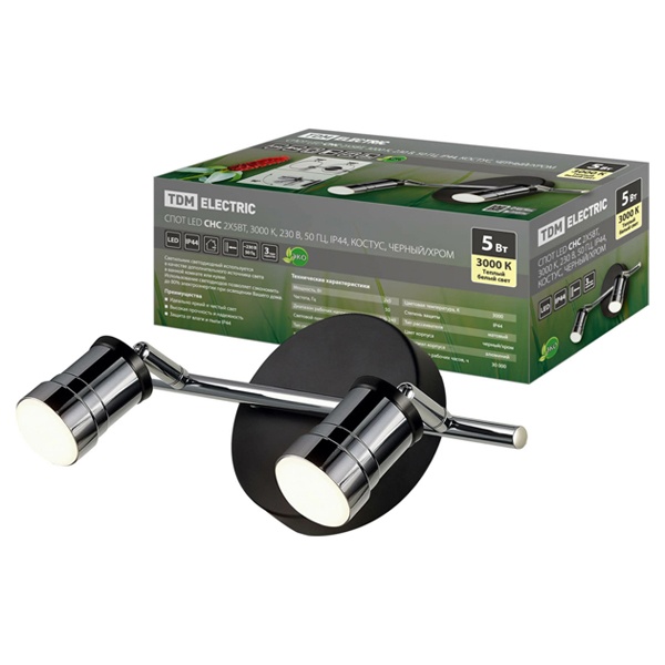 Спот LED СНС 2х5Вт, 3000 K, 230 В, 50 Гц, IP44, Костус, черный/хром TDM Electric
