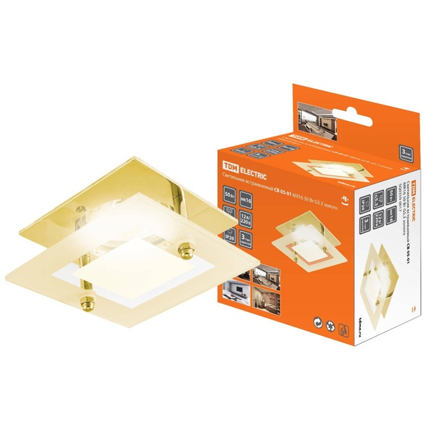 Точечный светильник встраиваемого монтажа, квадратный ТДМ под лампу MR16 напряжением 12/220 Вольт, максимальной мощностью 50 Ватт, с цоколем G5,3, цвет золото SQ0359-0017