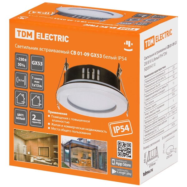 Светильники встраиваемые CB IP54 предназначены для работы в однофазных сетях переменного тока с номинальным напряжением 230 В.