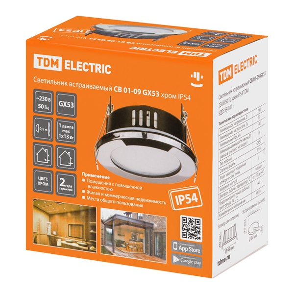 Светильники встраиваемые CB IP54 предназначены для работы в однофазных сетях переменного тока с номинальным напряжением 230 В.
