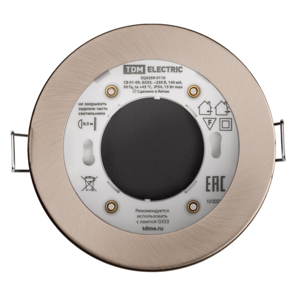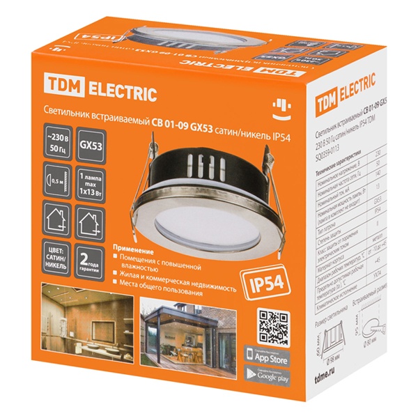 Светильник точечный потолочный СВ 01-09 ТДМ, под лампу LED максимальной мощности 13 Ватт с цоколем GX53, для помещений с повышенной влажностью, цвет сатин/никель SQ0359-0113