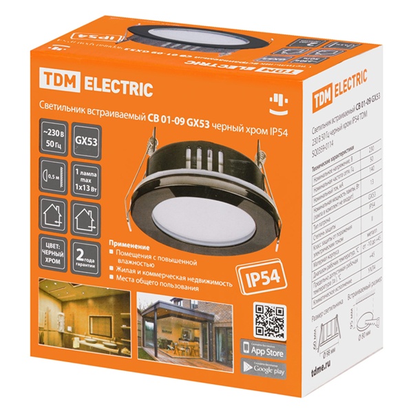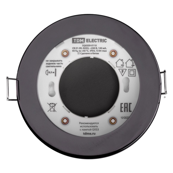 Светильник точечный потолочный скрытого монтажа СВ 01-09 ТДМ, под лампу LED максимальной мощности 13 Ватт с цоколем GX53, для помещений с повышенной влажностью, цвет черный хром SQ0359-0114
