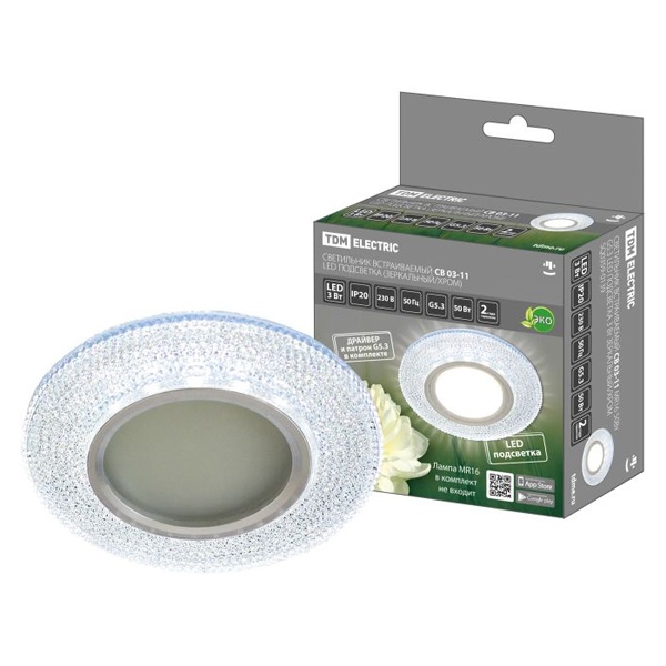 Светильник встраиваемый СВ 03-11 MR16 50Вт G5.3 LED подсветка 3 Вт зеркальный/хром TDM Electric