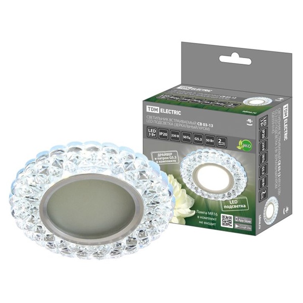 Светильник встраиваемый СВ 03-13 MR16 50Вт G5.3 LED подсветка 3 Вт зеркальный/хром TDM Electric