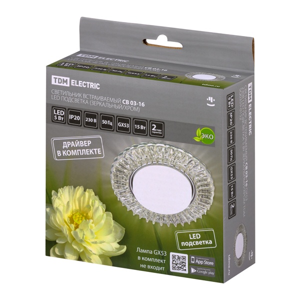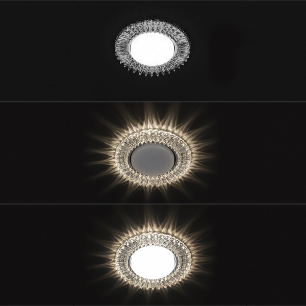 Светильник встраиваемый потолочный СВ 03-16 ТДМ, под лампу LED максимальной мощностью 15 Ватт с цоколем GX53, с подсветкой 5 Ватт, цвет зеркальный/хром SQ0359-0152