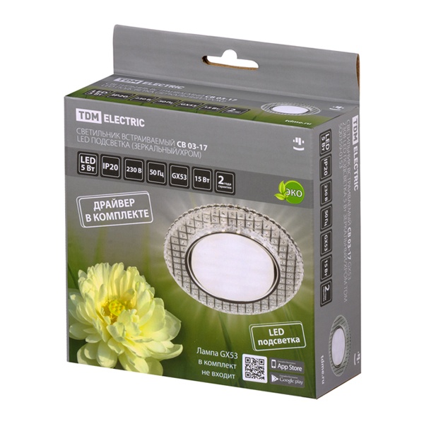 • Светильник встраиваемый TDM СВ 03-17 GX53 230В LED подсветка 5 Вт зеркальный/хром